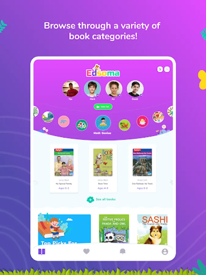 Edsoma allows you to pick three free books in our suits-all categories after you download the app and create an account. If you enjoy the experience and like to read more books, the subscription plan will grant you access to all the books in our continuously growing & extensive library and more. The plan includes but is not limited to: