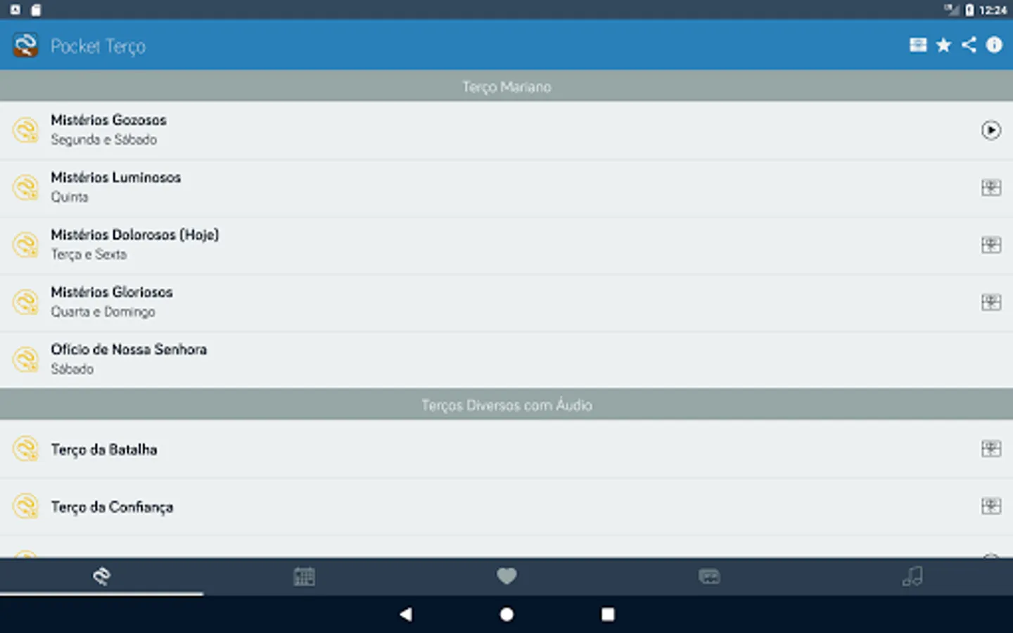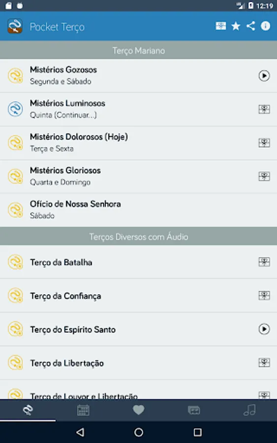 Pocket Rosary is an application that contains several Thirds to pray and Audio-third to hear. With this app you do not need booklets or even the third itself, as it contains all the prayers and accounts to help you pray. All content is updated online (requires Wifi or Mobile connection).