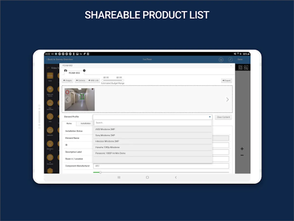 Ideal for any Professional responsible for managing systems within corporate and government facilities, as well as System Integration Professionals in sales, technical, and project management, System Surveyor provides complete system life cycle management on a single easy to use platform - from initial planning to end of life. The survey information is easily and securely linked to the cloud and shared with other team members, clients or vendors for collaboration and reference. Or, simply send as a PDF file via e-mail directly from your Android Tablet.