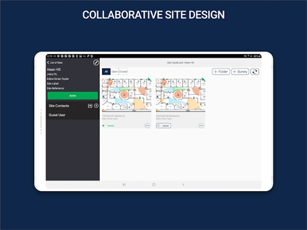 • Ability to manage multiple independent sites, and multiple surveys (floor plans) per site