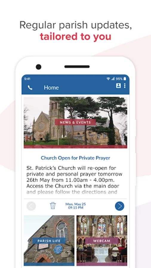 Each parish can have its own customised look with its own branding, layout and colour theme.