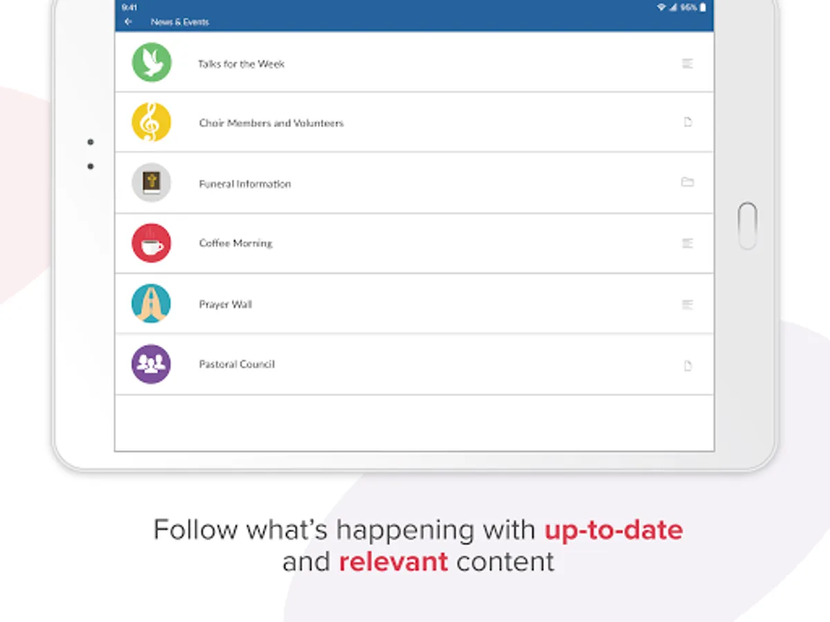 Users of the apps may select the information areas that they are interested in for example, particular church services and activities. This profile is used to select the messages that are shown and the documents that will be available in the content areas.