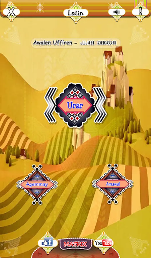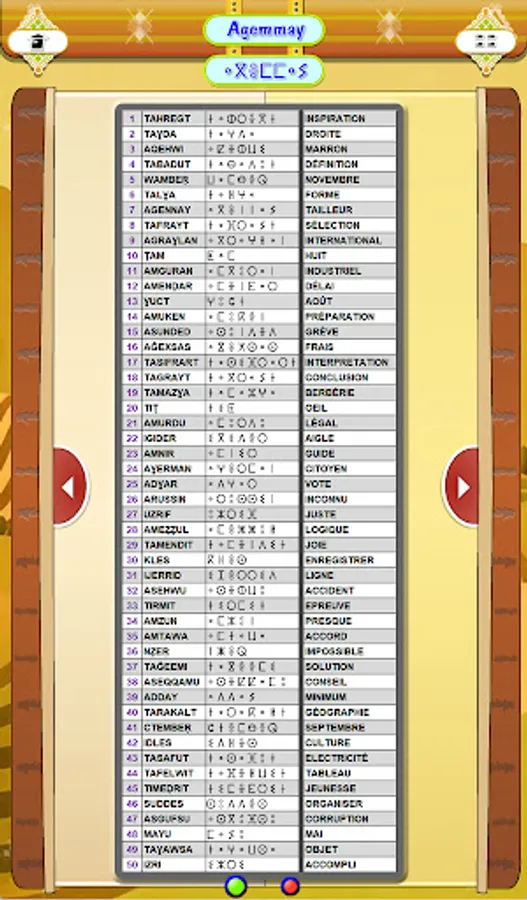 Awalen Ufiren is a game to have fun and improve your vocabulary in Tamazight. This game contains 100 words in Tamazight with their meanings in French.