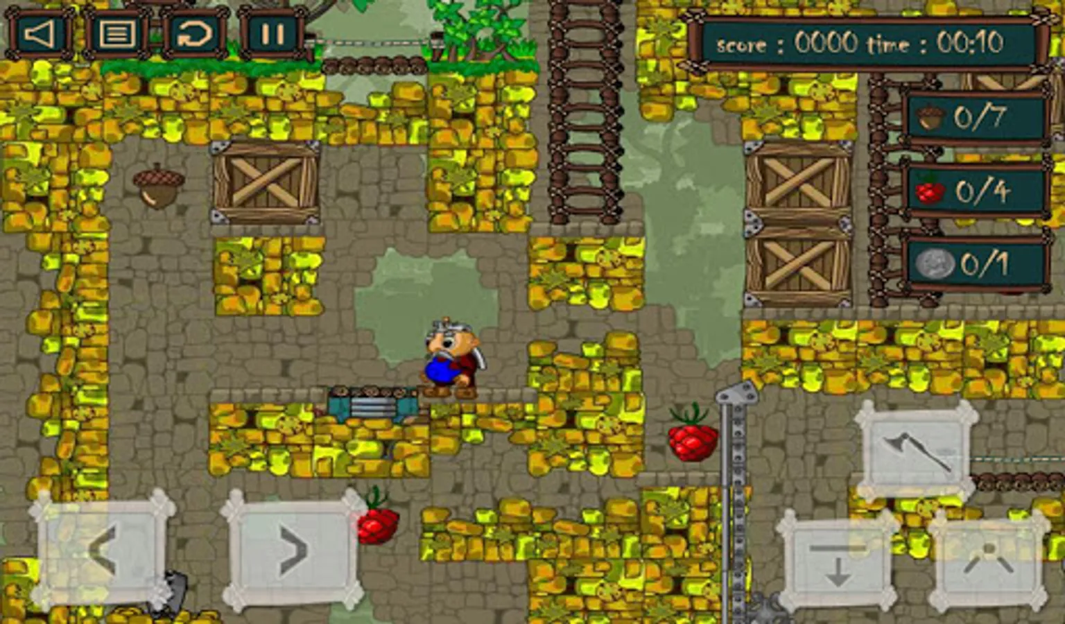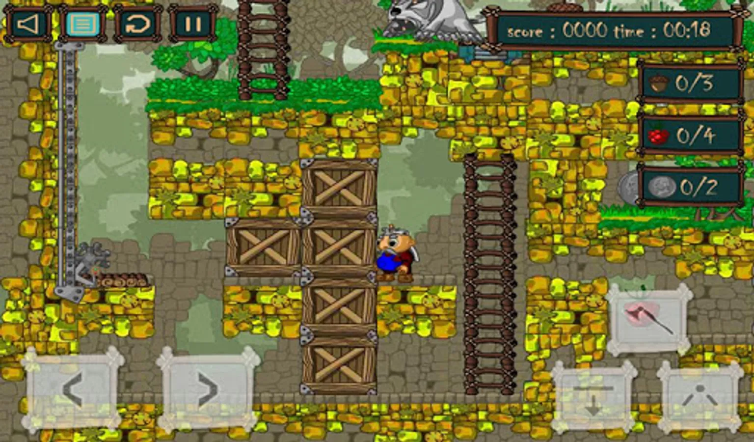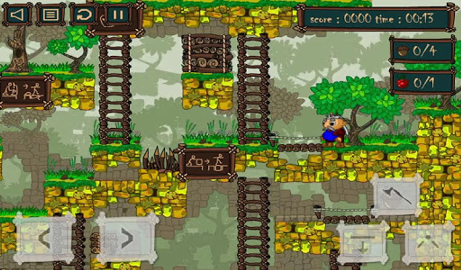 help the woodcutter find the way to his house by Building a path with boxes, woods, lifts and trees to get to the acorn-house. Collect acorns, berries and coins. Don't hit to catches.