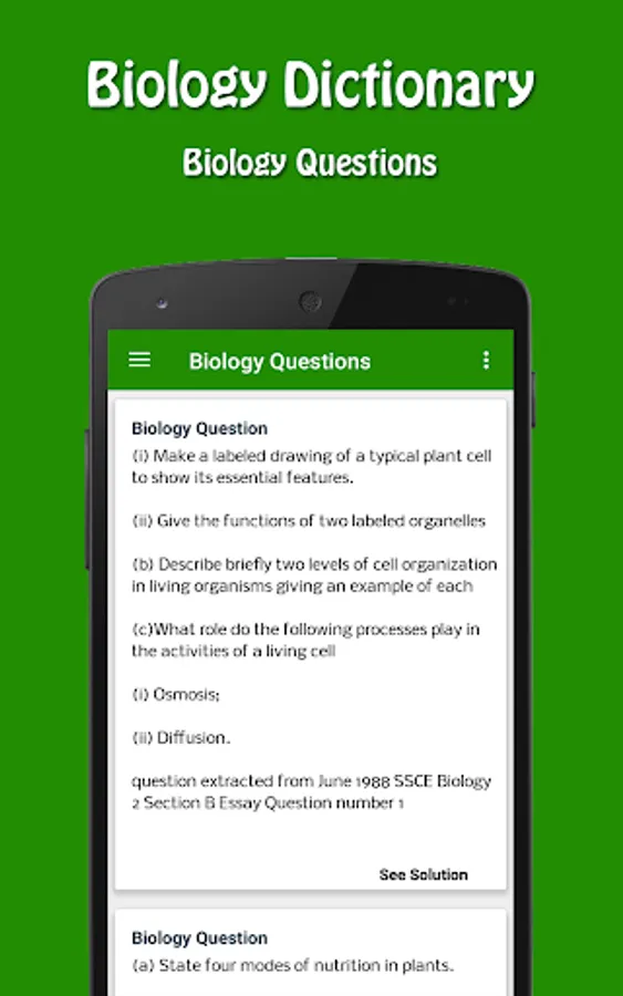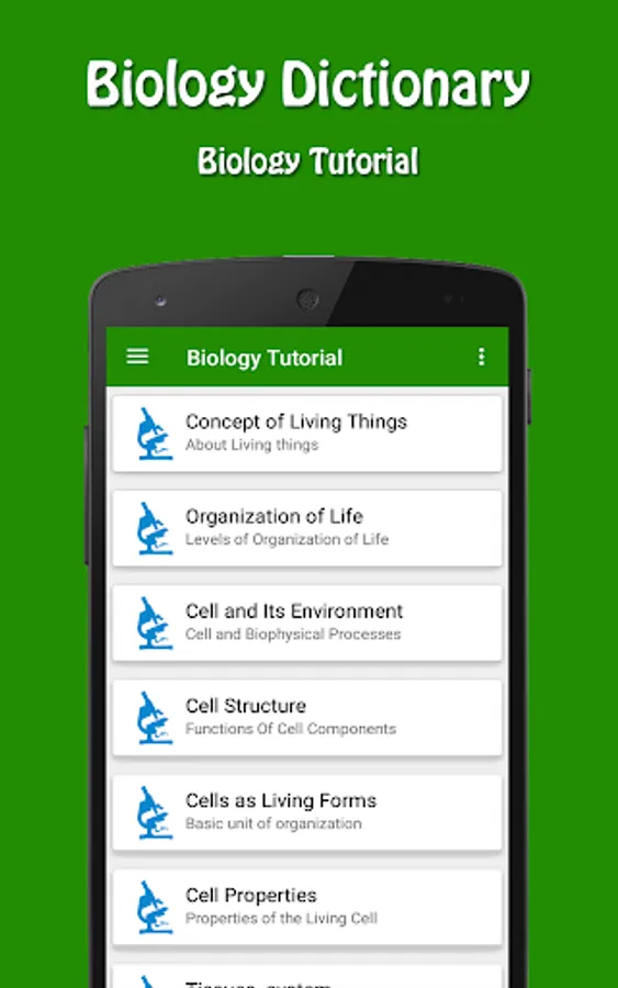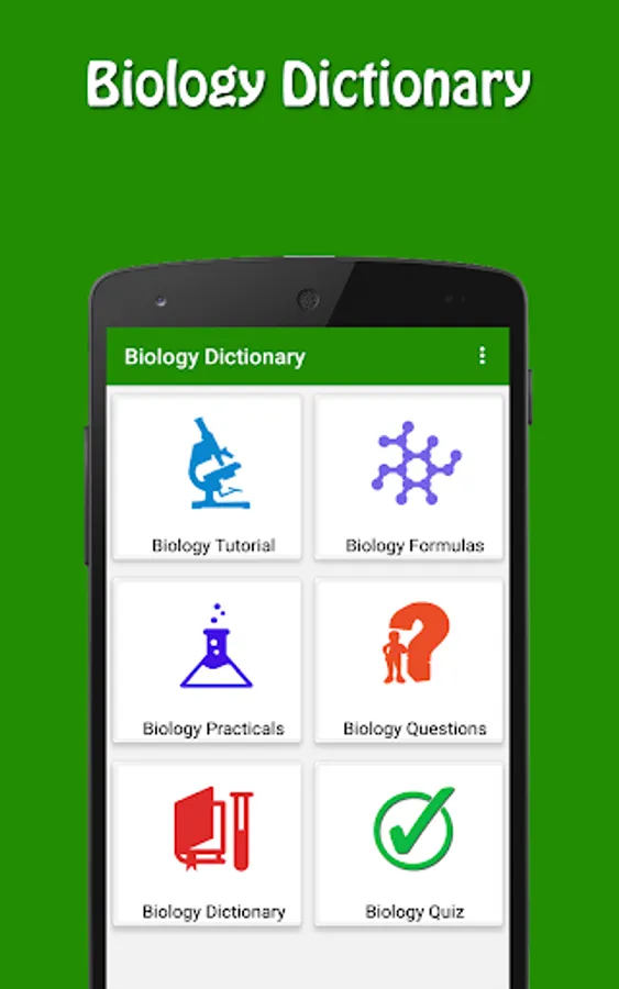 The app has around six categories that deal with tutorials, formula, possible exam questions, biology practical, biology quiz and dictionary.