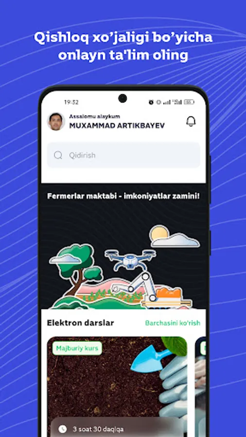 Фермерлар мактаби иловаси қишлоқ хўжалигини тажрибали профессор-ўқитувчилар томонидан ишлаб чиқилган ўқув дастур орқали онлайн ўрганиш имконини тақдим этади. Шунингдек, иловада қуйидагилар мавжуд: