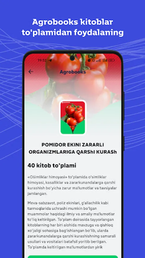 Ilovada Agrobooks kitoblar to‘plamidan foydalanish mumkin.