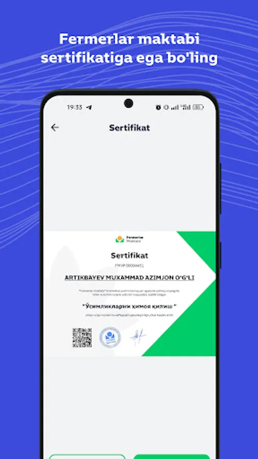 Fermerlar maktabi ilovasi qishloq xo‘jaligini tajribali professor-o‘qituvchilar tomonidan ishlab chiqilgan o‘quv dastur orqali onlayn o‘rganish imkonini taqdim etadi. Shuningdek, ilovada quyidagilar mavjud: