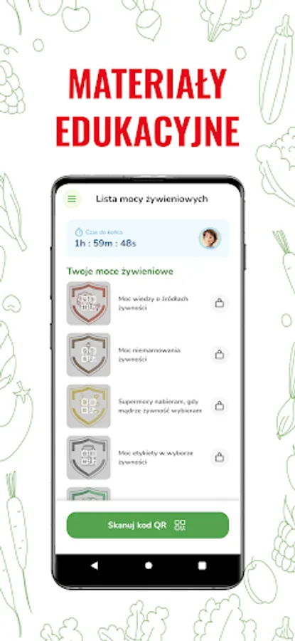 A student using the application has the opportunity to get acquainted with the 12 Powers of JEŻ, which are unlocked after scanning the shared QR code with the phone. Each Hedgehog Power consists of short videos presenting educational materials, nutritional trivia, practical advice as well as tasks and simple experiments that can be done at home on your own and/or under the supervision of adults. Users take part in short quizzes and games that help to consolidate the acquired knowledge. Completing all parts of the Power of Hedgehog allows the user to earn points that expand the Garden of Power of the Hedgehog, where you can observe the gradual growth and development of selected plants. The application contains AR elements (3D avatars) and the user can choose one of the 4 heroes of the Hedgehog's Power.