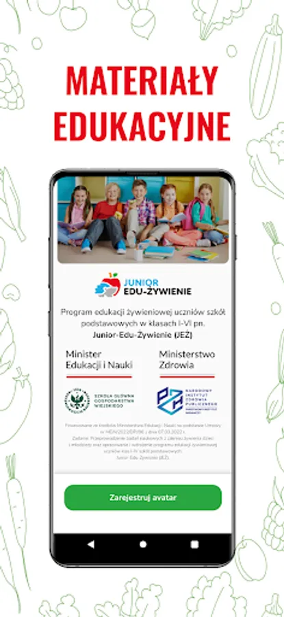 Eating habits learned in childhood are continued in adulthood, and therefore it is important to shape them correctly from an early age. For this purpose, the Ministry of Education and Science commissioned the Warsaw University of Life Sciences (SGGW) to prepare a nutritional education program for primary school students, Junior-Edu-Żywanie (JEŻ). The application was developed specifically for this program to help consolidate knowledge about proper nutrition.