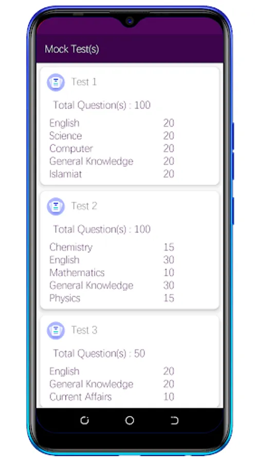 With PakTest MCQS, you can prepare for Subject-wise, Grade-wise 5 to 8, Matric and Intermediate (SSC and HSC), Past Papers, FPSC, PPSC, SPSC, STS and Entry tests for engineering, medical, and other programs. Our app is designed to help you test your knowledge and learn new concepts with ease.