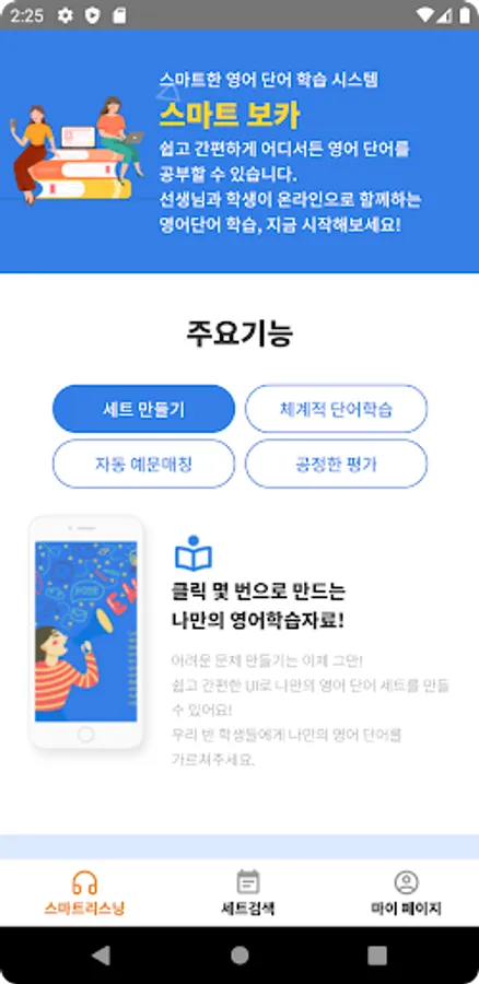 In EBS Smart Learning, Reading, Listening, Writing, Speaking, Phonics,