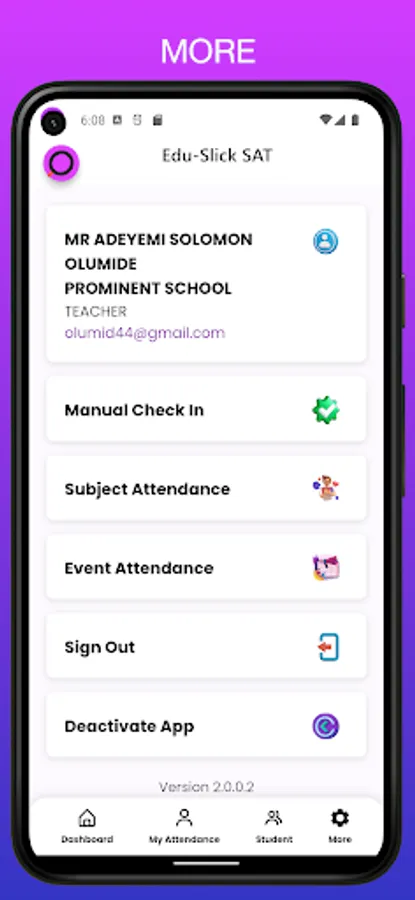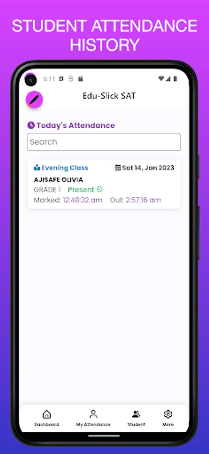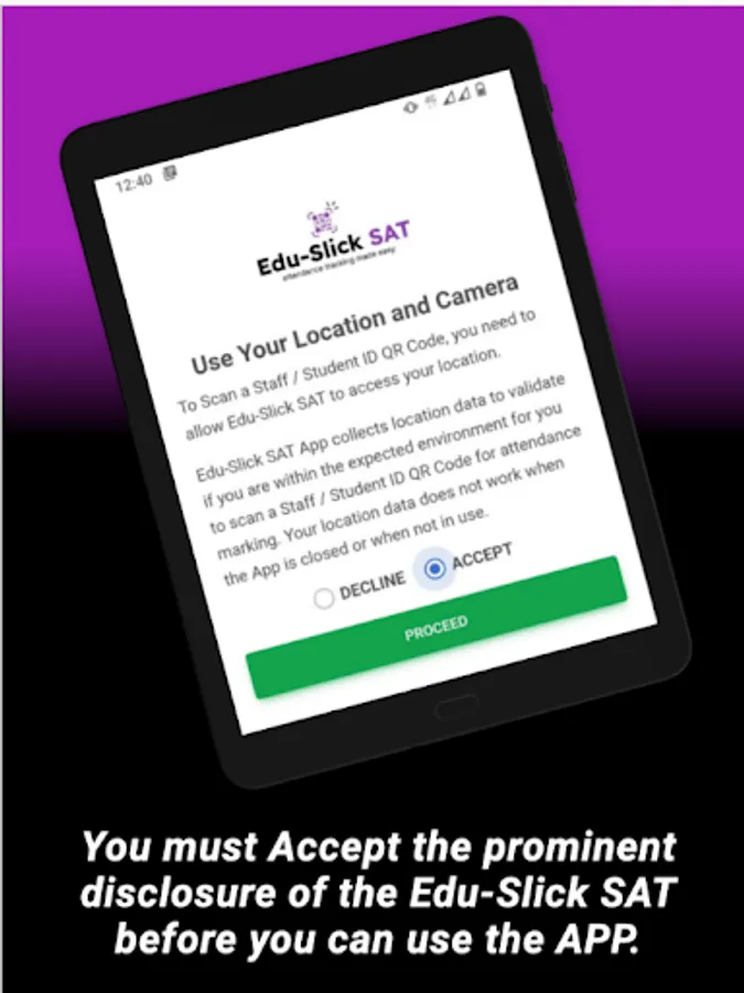 Student and Staff Attendance can only be done in a designated area as specified while setting up Edu-Slick SAT, for example: School Reception,Admin Office,School Entrance.