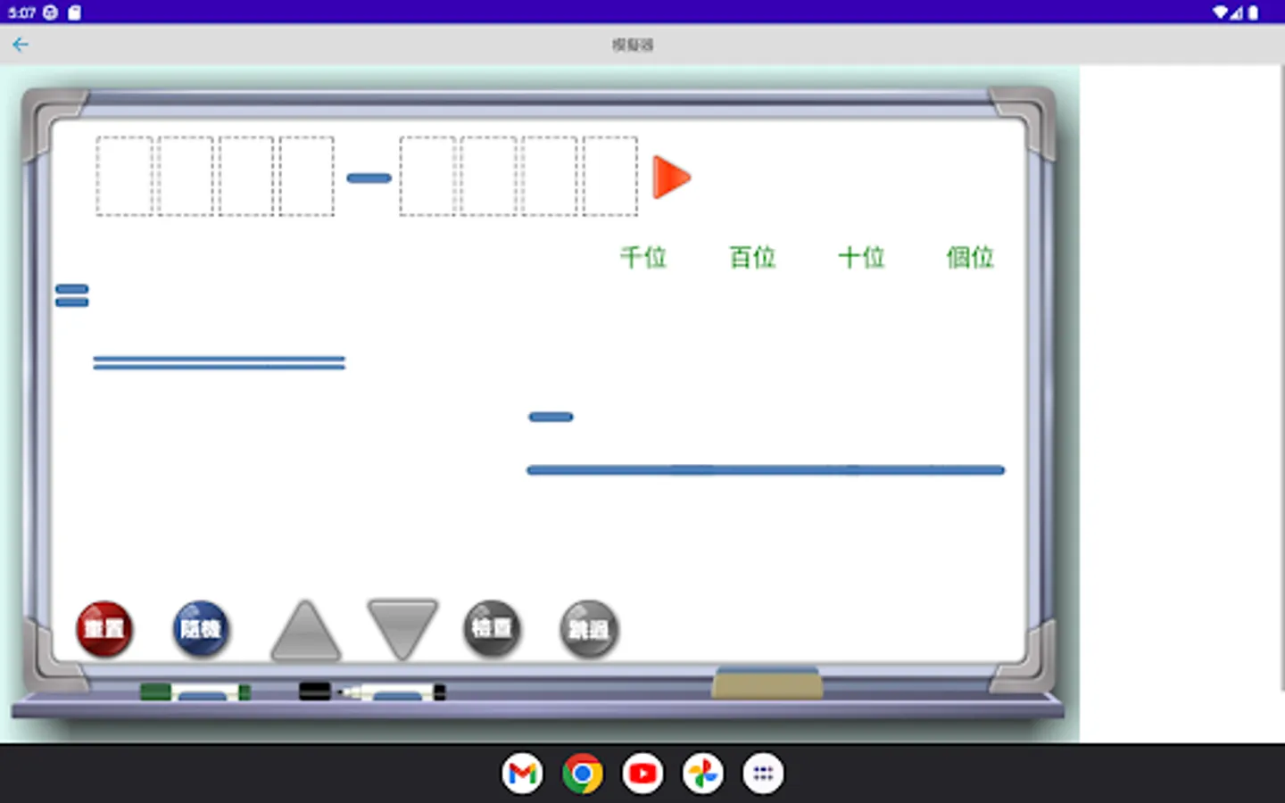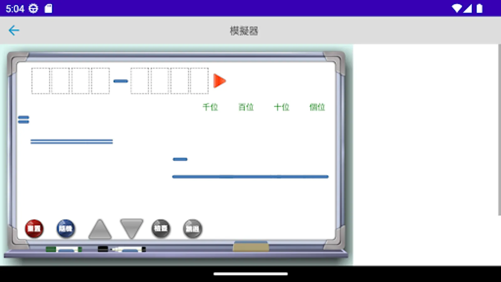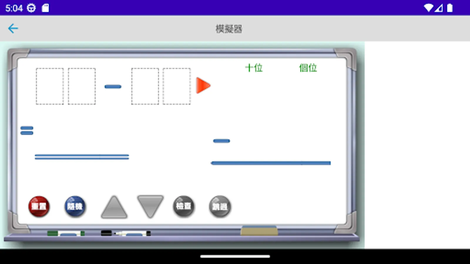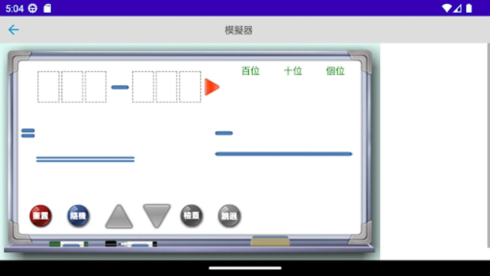 The subtraction simulator is a subtraction calculation application developed by "Mingchuang Education·New Asia Publishing House" (this application is specially designed for tablet computers, if you open it with a mobile phone, there may be insufficient resolution); by providing different forms The subtraction type analog of