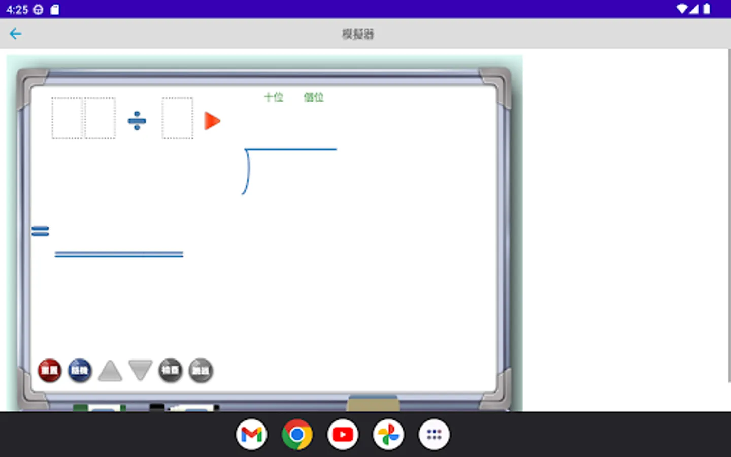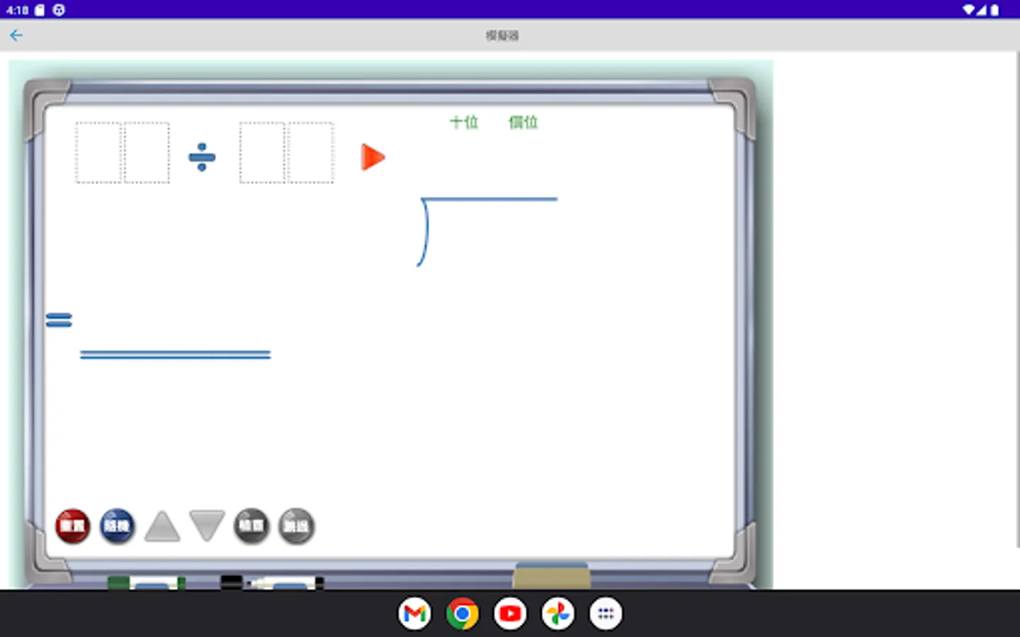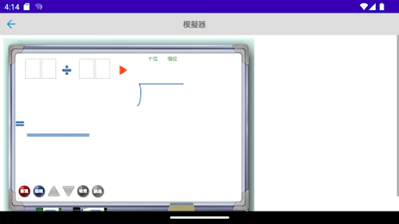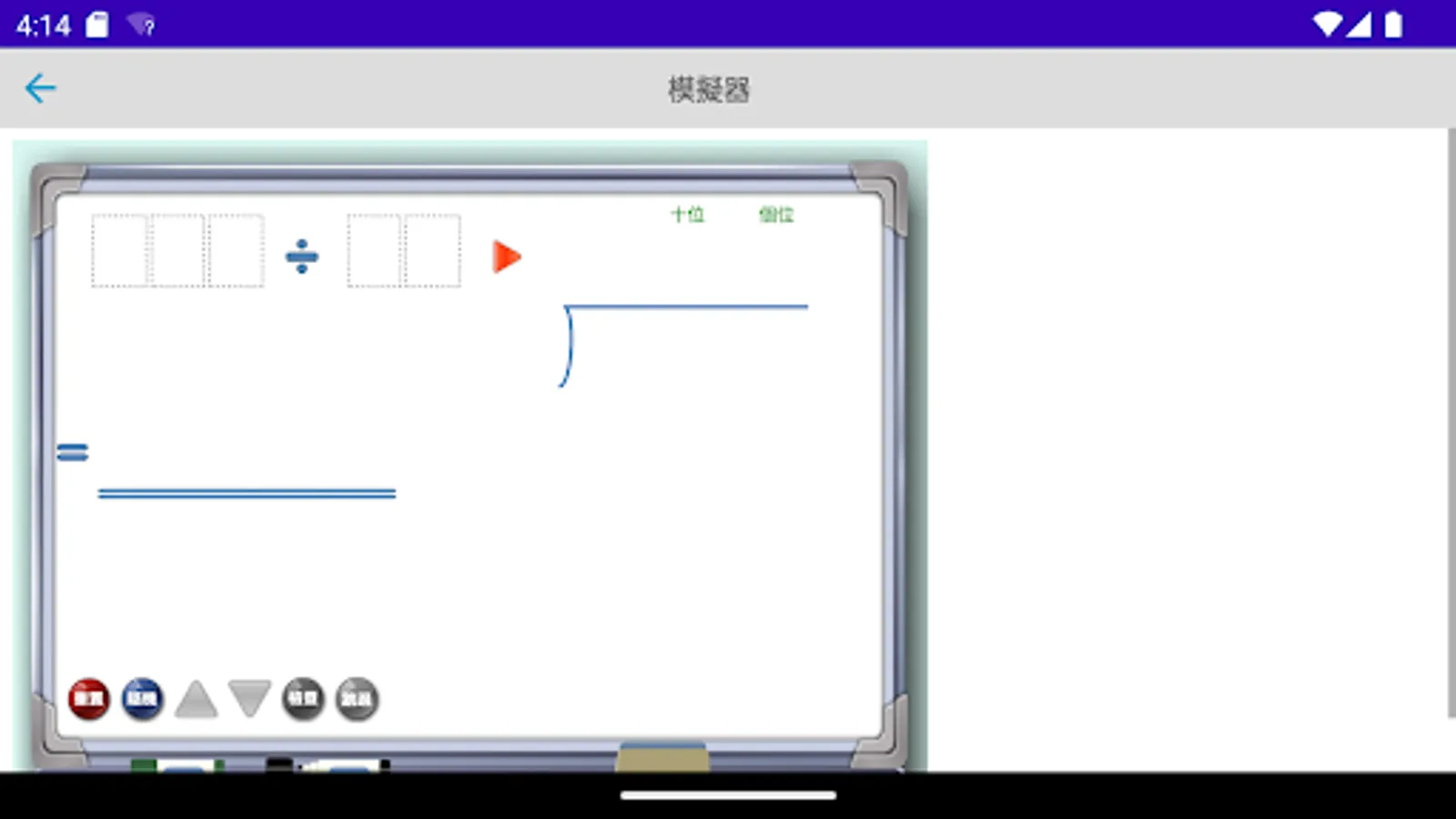 The division simulator is a division calculation application developed by "Mingchuang Education·New Asia Publishing House" (this application is specially designed for tablet computers, if you open it with a mobile phone, there may be insufficient resolution); by providing different forms The division type analog of