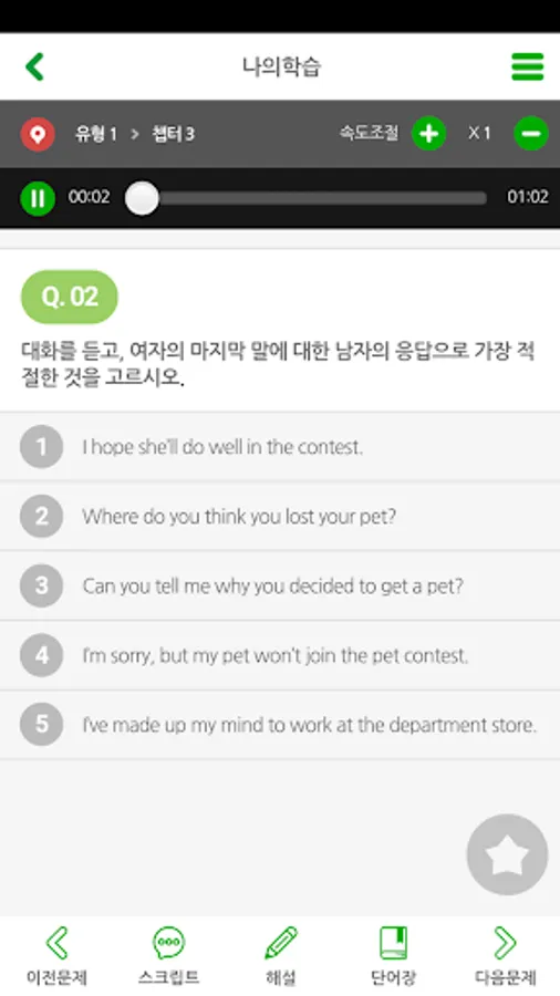 Wrong answer note / Weakness note / Favorite / Script word view / Script and commentary at a glance / SAT vocabulary book / EBS vocabulary book / Practical practice test / EBS English listening questions by type consisting of situations and strategies / Repeat listening / 2-minute mock test / Vocabulary test / Wrong word only test / EBS English video learning