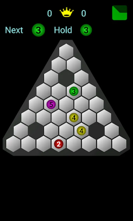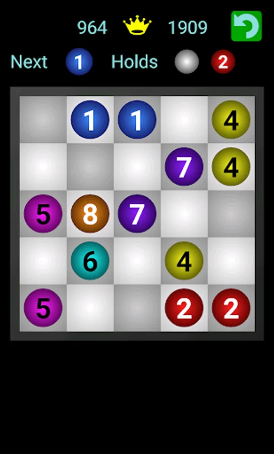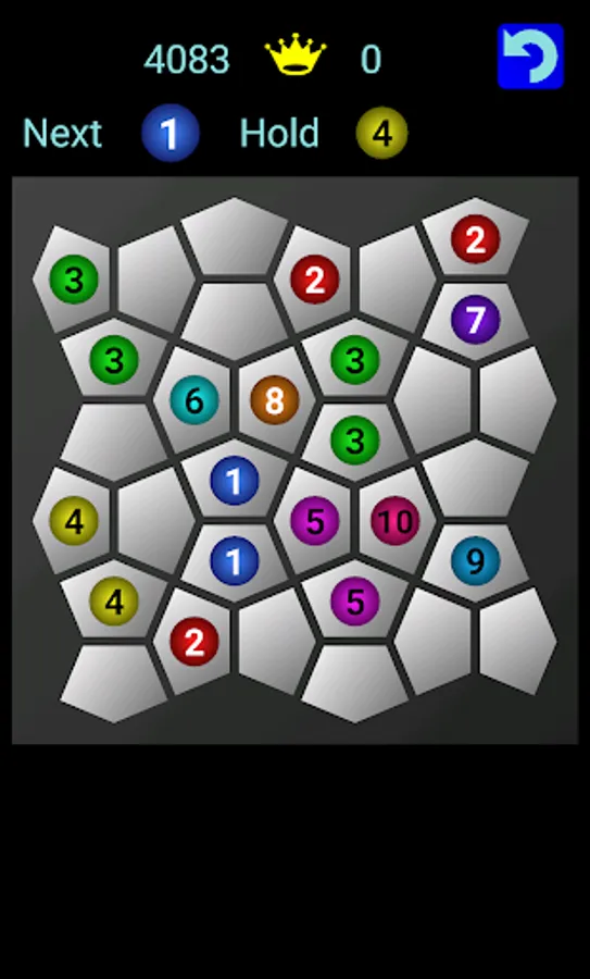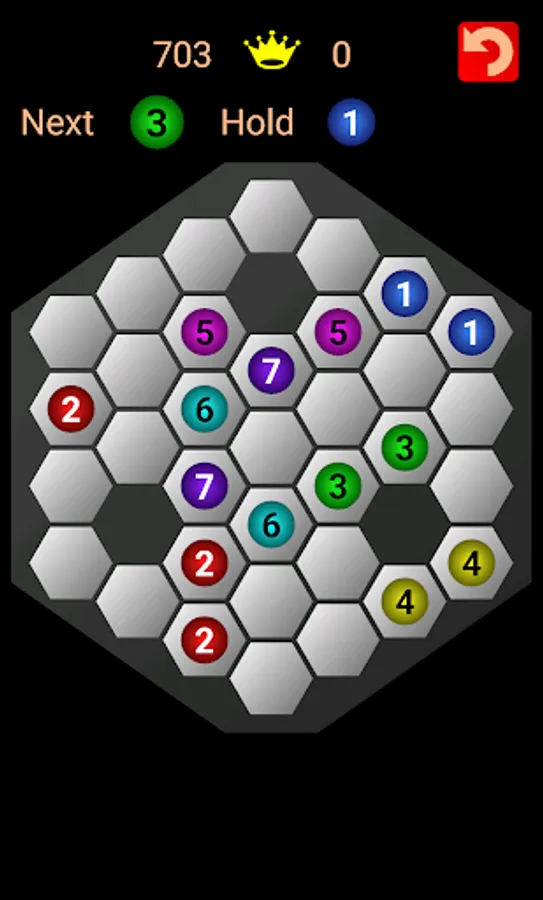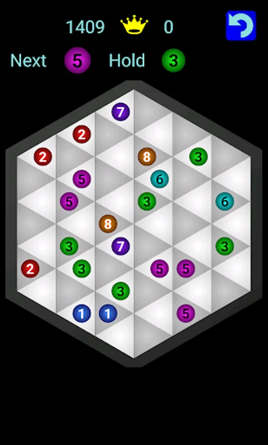 Three neighboring balls with the same number will merge to a single, bigger number ball.
