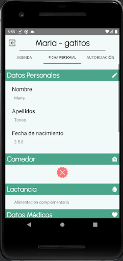 As a parent you can add as many children as you need, you can create them yourself to fill in their personal information or it will be shared with you by an educator who uses eduK via QR. Observe the records in the digital agenda every day, obtain information from the educator and dining room. In addition to confirming authorizations and seeing circulars, you can chat with the educator.
