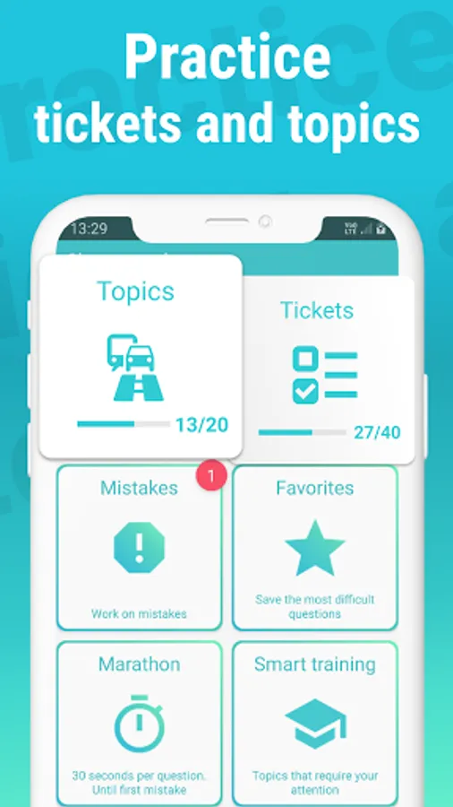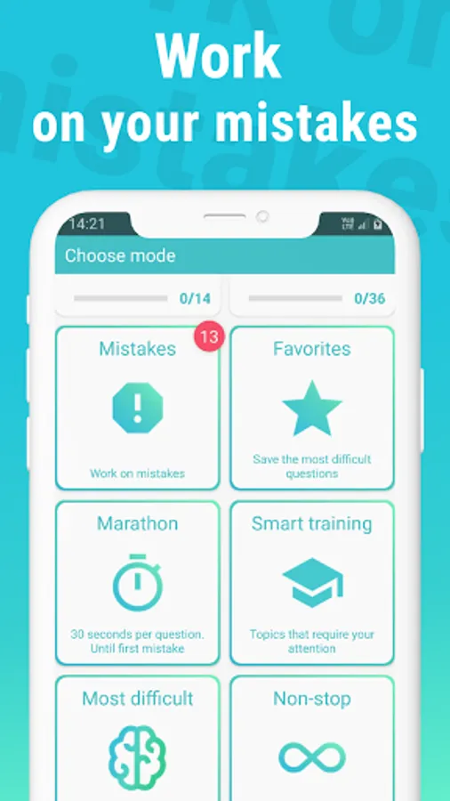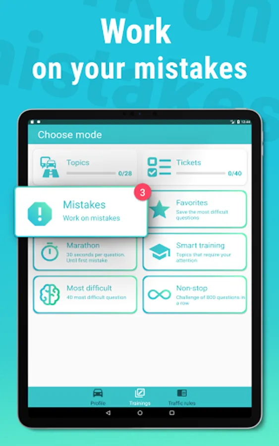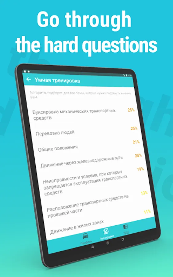 🚘 Your smartphone will select the most difficult questions for you in the "Smart training" and "Most difficult" modes by itself