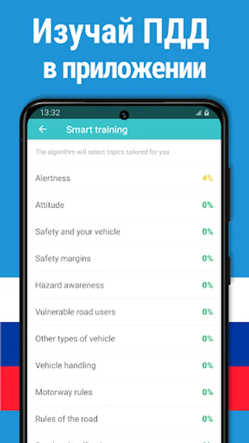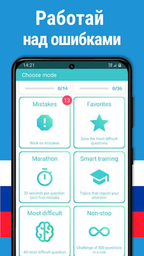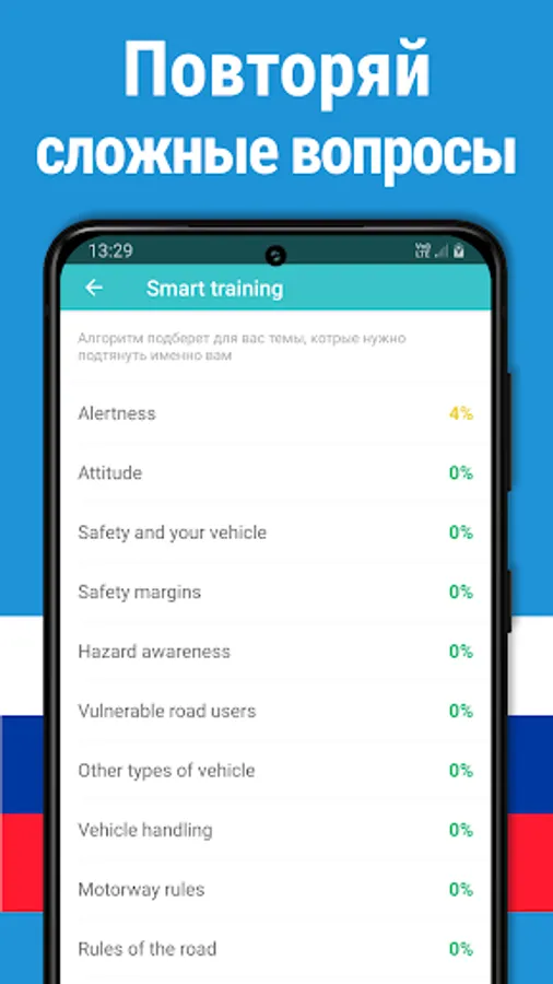 🚘 Your smartphone will learn by itself and choose the most difficult questions for you in the "Smart Workout" and "Most Difficult" modes