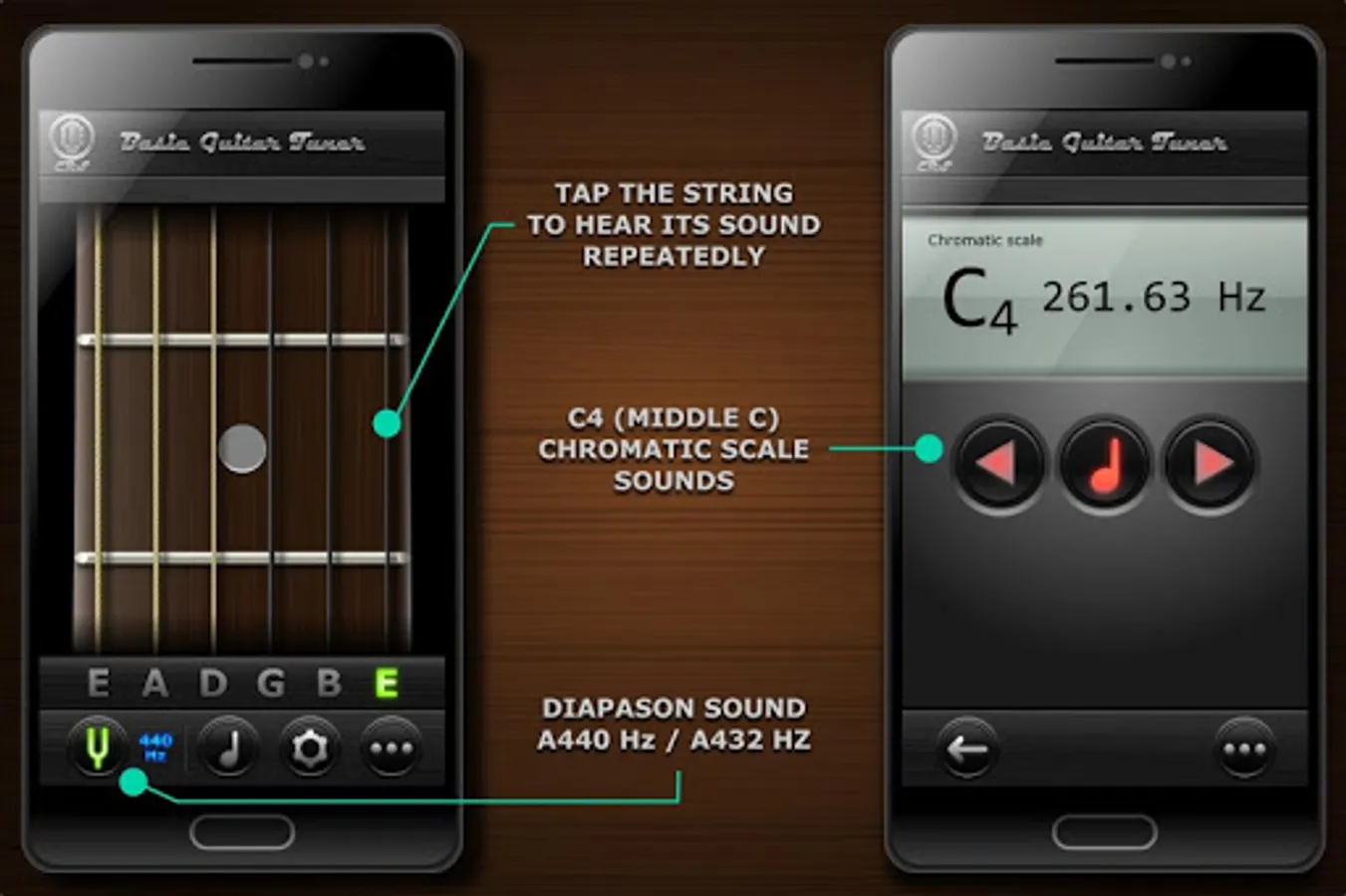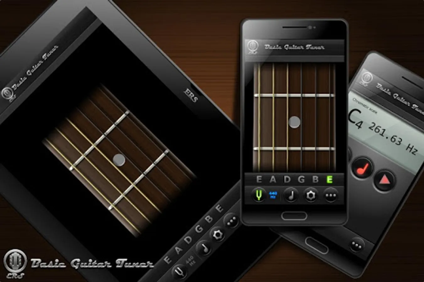 Basic Guitar Tuner is a simple tuner which gives you the sound of strings standard tuning (E, A, D, G, B, E).