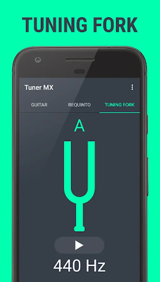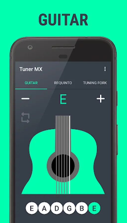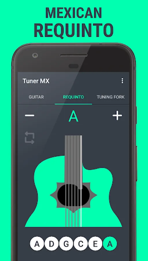Tuner MX is a tuner designed for Requintos and Guitars (guitar requinto is similar to a guitar but smaller and with a higher pitch: A2-D3-G3-C4-E4-A4).