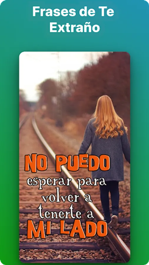 Frases de Te Extraño is more than an application, it is an easy way that helps you keep the flame of love alive despite the distance. With its wide collection of images with love phrases, you will be able to find the inspiration you need to express your feelings in a unique and special way. In addition, with the option to share the images on your social networks, you will be able to demonstrate that person.
