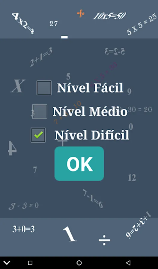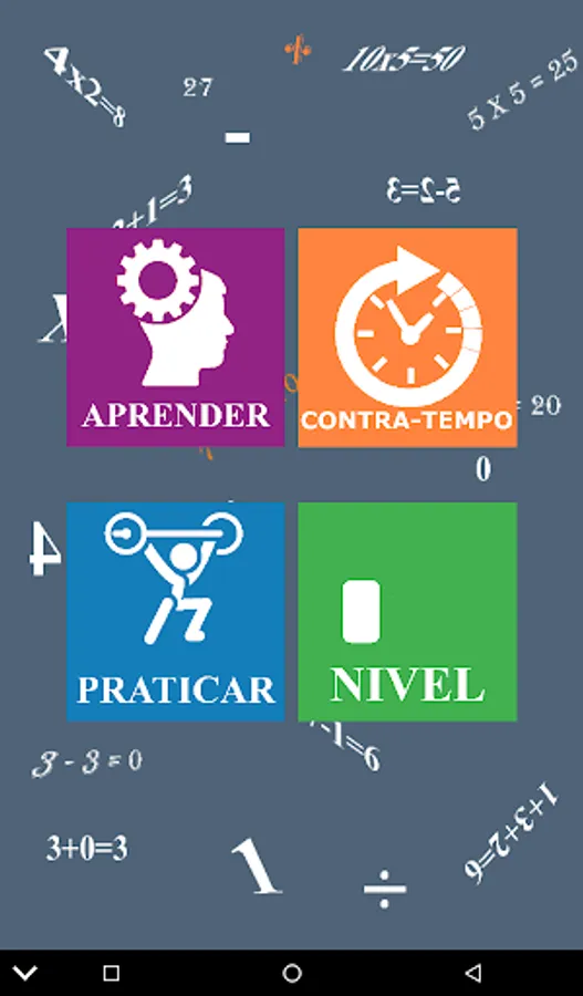 The APP has activities involving the 4 basic operations, which are developed in 3 levels of difficulty, strengthening the construction of learning. Being divided into simple operations activities, it requests the response, and activities against the elapsed time.