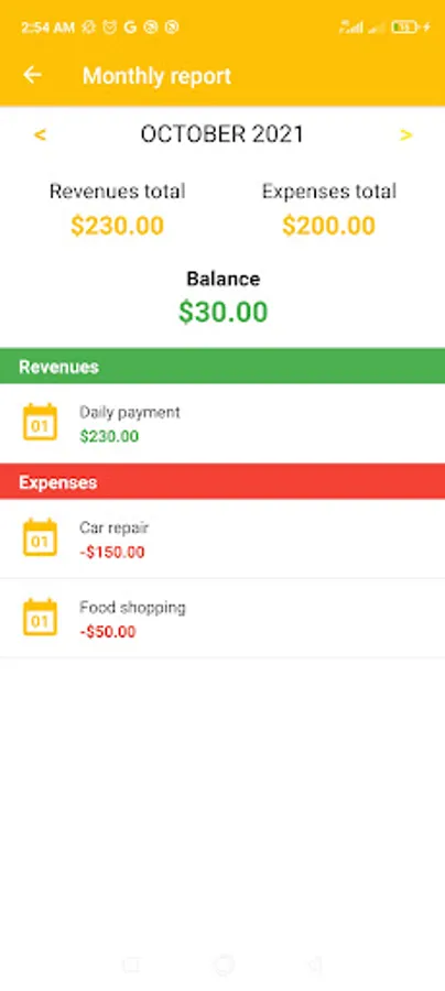You also have a daily balance with a color indicator if the balance is negative or positive according to income or expenses.