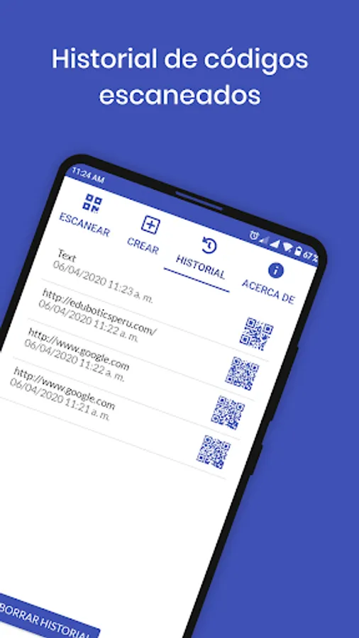 - History of scanned QR codes.