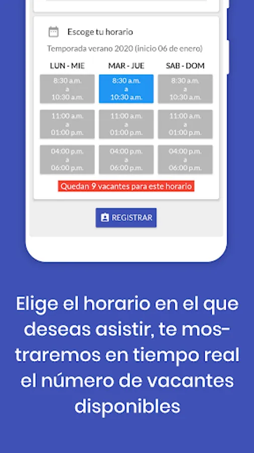 - Choose the time you wish to attend, we will show you in real time the number of available vacancies.