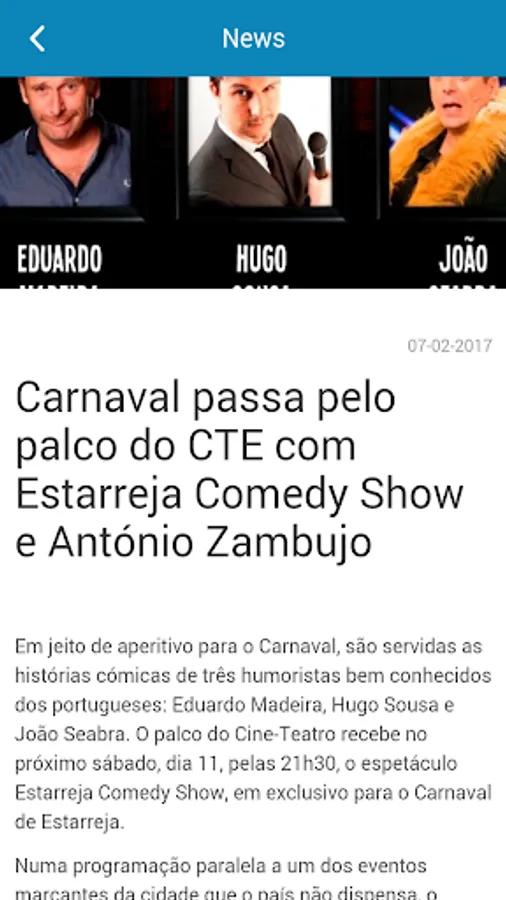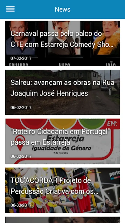 Application that aims to promote news and events, spread of information and tourist and cultural promotion of the municipality of Estarreja. The group of features will soon be available and the municipality will be able to communicate and receive direct feedback from the citizens, by providing some services.