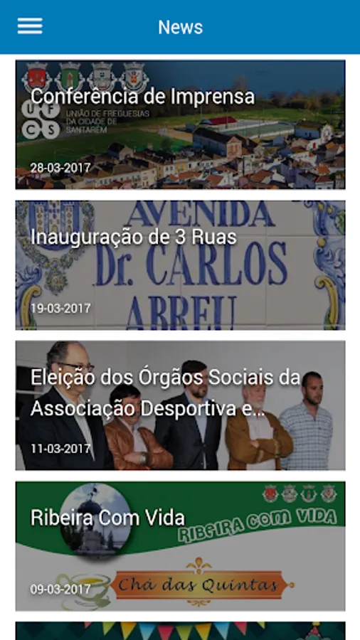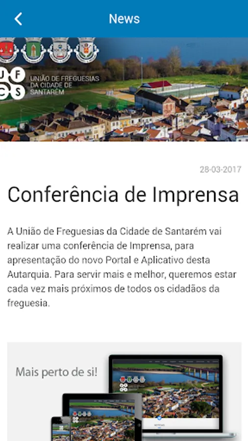 Application that aims to promote news and events, spread of information and tourist and cultural promotion of the Union of Parishes of Cidade the Santarém. The group of features will soon be available and the parish will be able to communicate and receive direct feedback from the inhabitants, by providing some services.