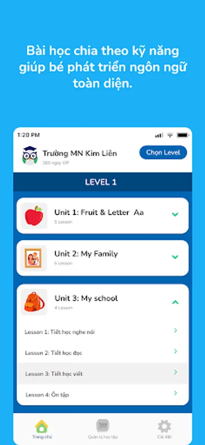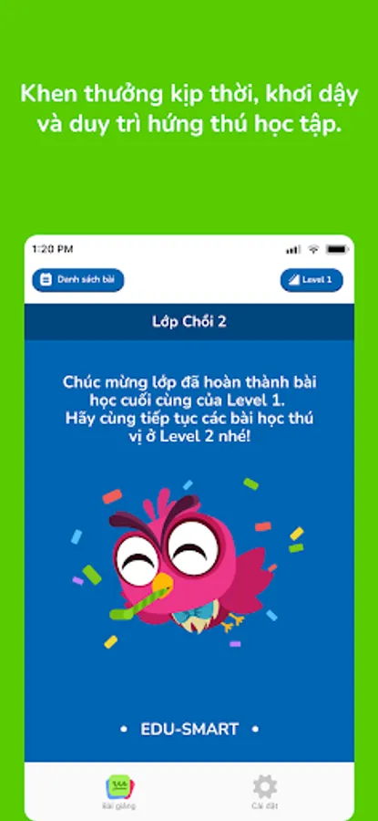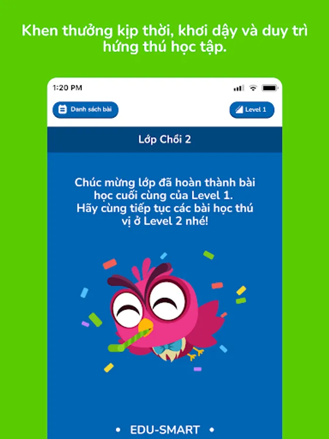 EduSmart Kids is an English learning application for children aged 3-8, designed based on the Cambridge Starters program, helping children develop listening - speaking - pronunciation naturally through songs, conversations and interactive games.