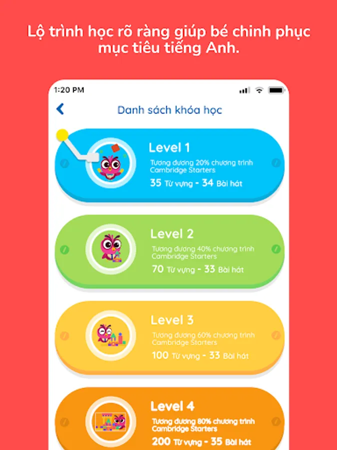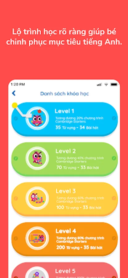 Includes 5 Levels corresponding to 20-100% of the Cambridge Starters program.
