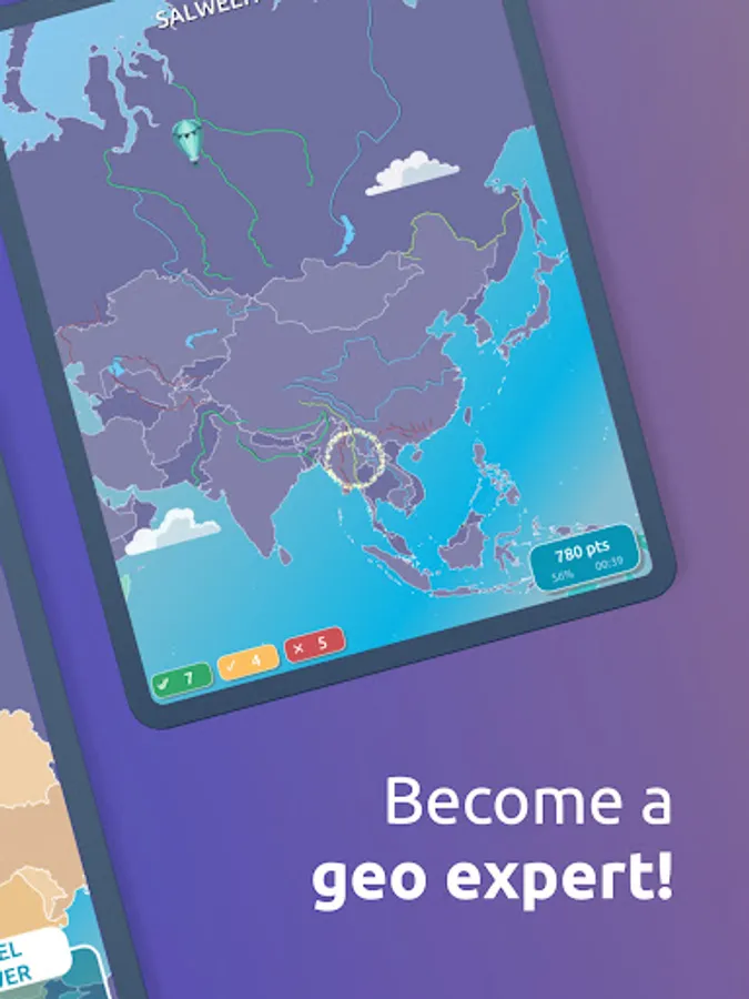 Learn to locate all the countries on a map and become a geography expert! Whether you need to improve your knowledge of world provinces, maps, or the flags of each country, GeoExpert geography games has you covered.