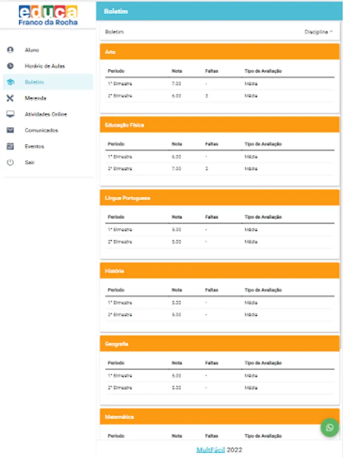 Portal for students from municipal schools in the city of Franco da Rocha.
