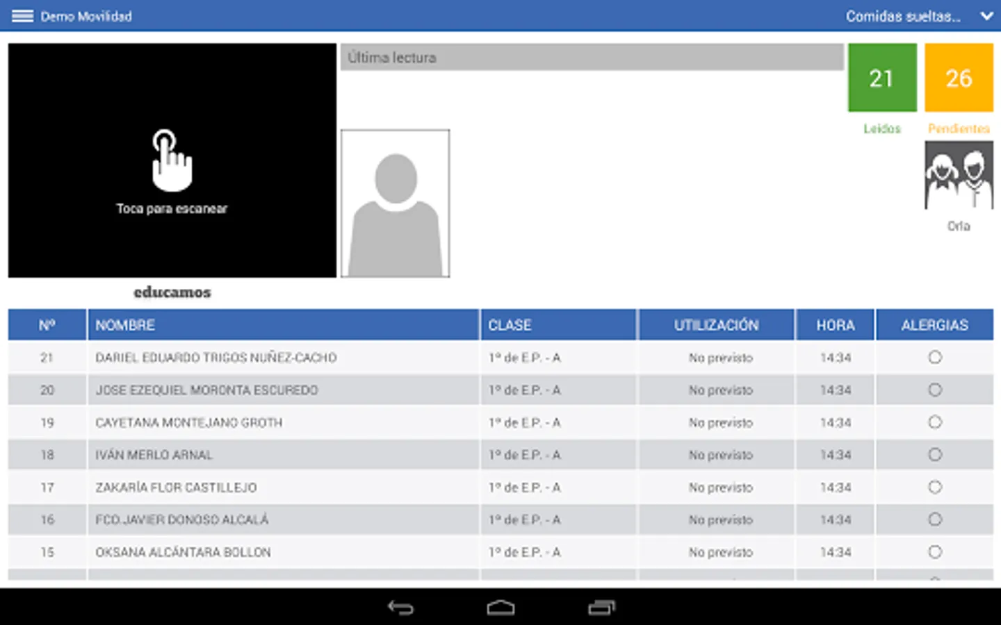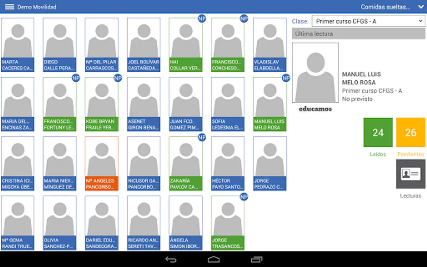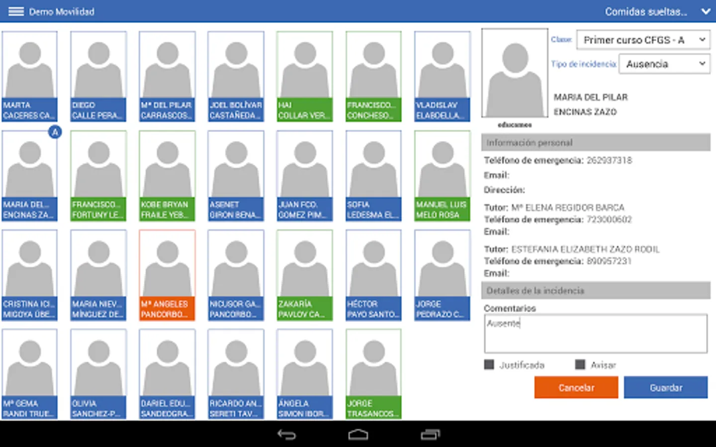 For each student dining user can register any impact on existing school (absences, delays ...). These incidents are recorded when the user educate synchronize data.
