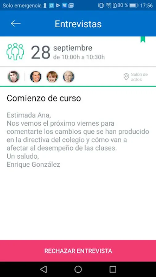 Say goodbye to paper, the application Families have online information. You'll see the class schedule, you can justify an incident and warn of absence; review the pending tasks and qualifications are getting your children; view and download bulletins; receive notices and circulars; accept or reject interviews and authorizations; sign you and your sons and control activities receipts issued by the school.