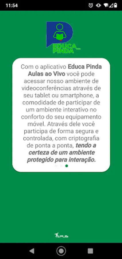 With the Educa Pinda: Aulas ao Vivo app, the experience was simpler and more practical, in addition to the teacher being able to send you the class link by text message.