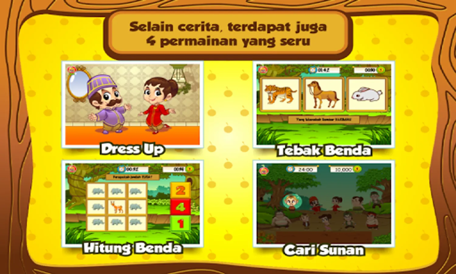 These applications can be classified into the application Tale Children, Interactive Children's stories, Folklore, Origins of Regional, Local Stories, Myths, Legends, Stories, Fables Animals. Specially designed for children Indonesia.