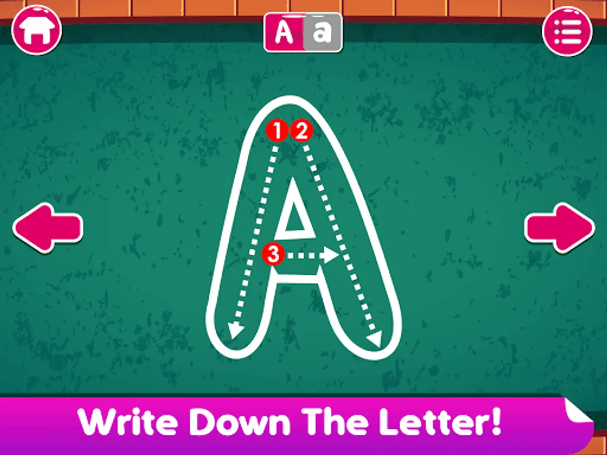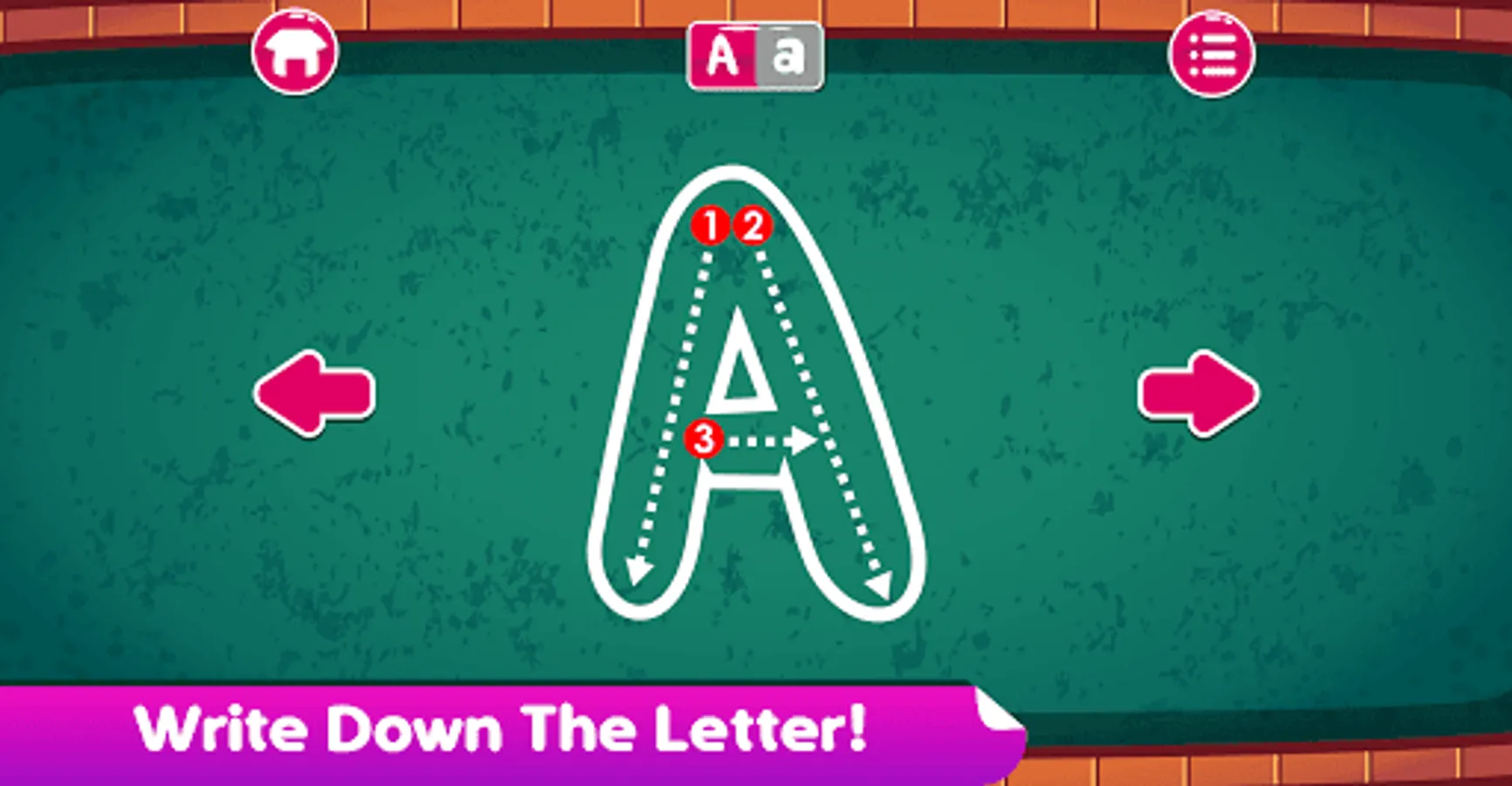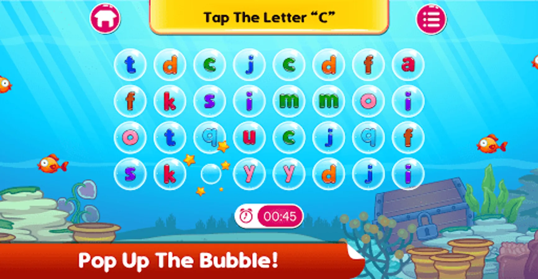 > 6 fun and educational mini games including Memory Games, Coloring Books, Sticker Books, Writing Letters, Letter Shoot, and Tap The Bubble.