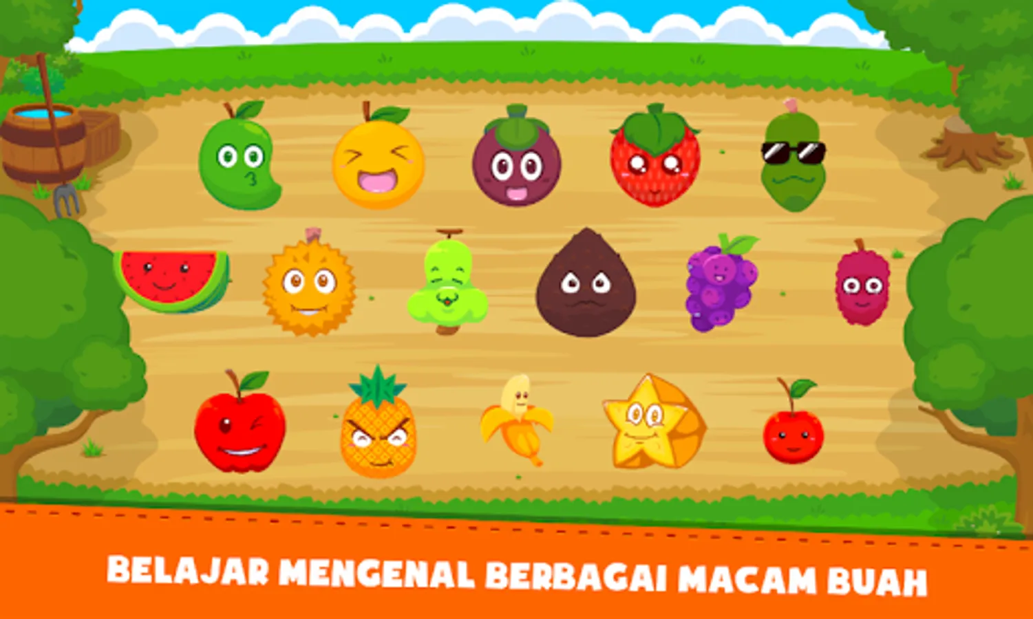 Oh look, there's so much fruit lining MarBel's orchard! As it turned out, MarBel arranged all the fruit in order according to the initial letter. A for apple, b for starfruit, c for cermai. Then, what about d? Come on, find out together!