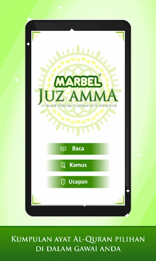 Juz Amma Marbel application is an application that contains the letters contained in Juz Amma. Where an application is made in the mobile device that is easy to carry anywhere and can be read at any time. Hopefully provides many benefits.