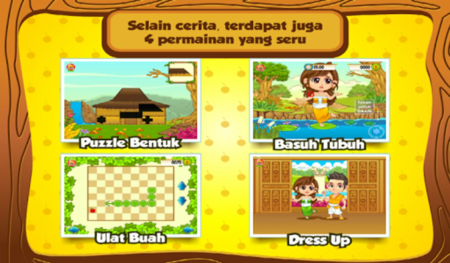 These applications can be classified into the application Tale Children, Interactive Children's stories, Folklore, Origins of Regional, Local Stories, Myths, Legends, Stories, Fables Animals. Specially designed for children Indonesia.