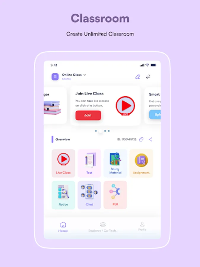 📝 Live Whiteboard: Collaborate and learn together using the Live Whiteboard feature. Teachers can share their screens and illustrate concepts in real time, fostering an engaging and immersive learning environment.