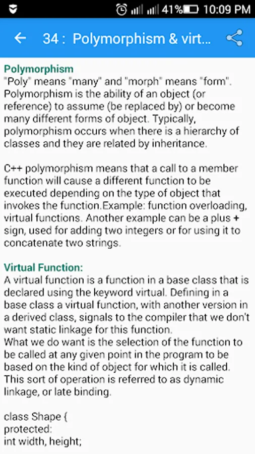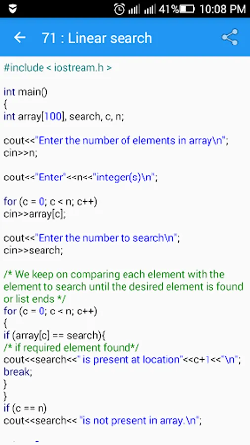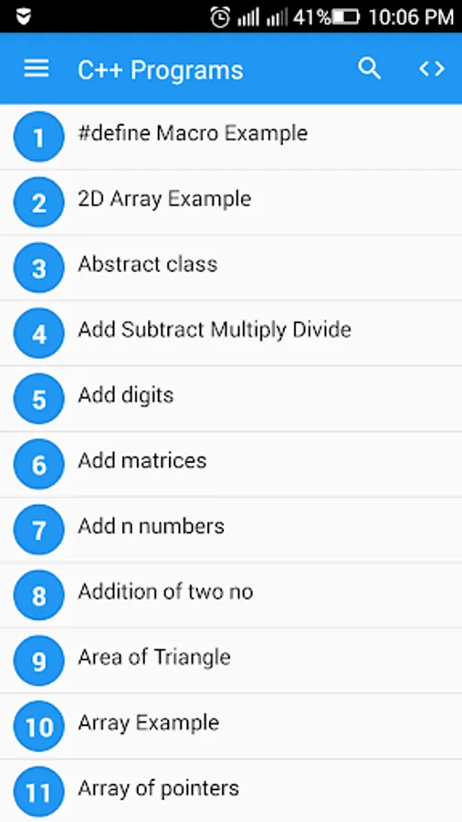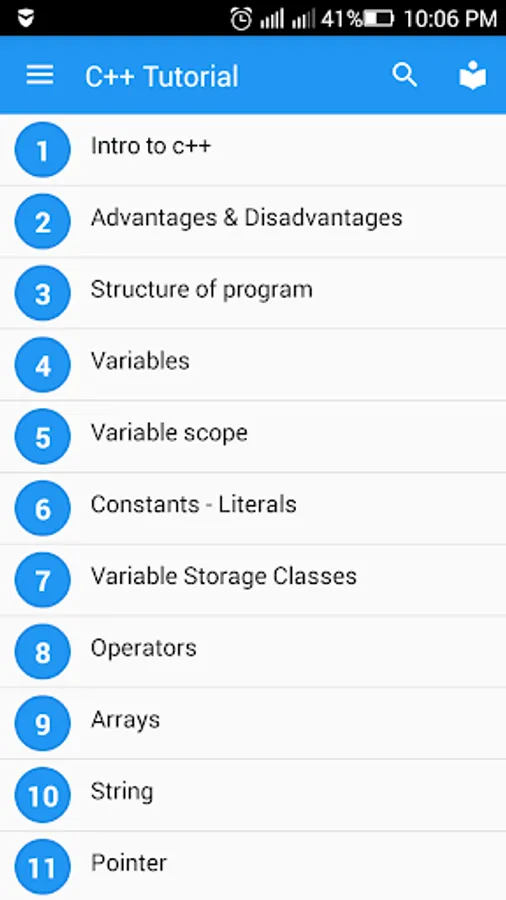 This C++ Programming app enables you to carry C++ programming Tutorials in your android phone. It contains about 143 Programs, many FAQ's & Important Exam and Interview Questions.