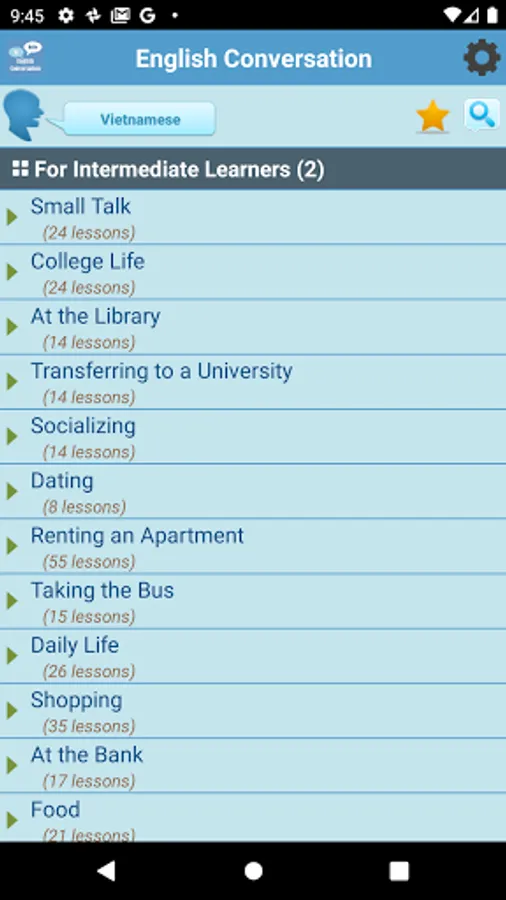 With over 2500 conversations in 85 diverse categories, you'll be exposed to a variety of real-life English conversations, from dating to banking and beyond. The conversations are organized by skill level, so you can easily find the right level for you, whether you're a beginner or intermediate learner.