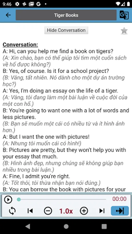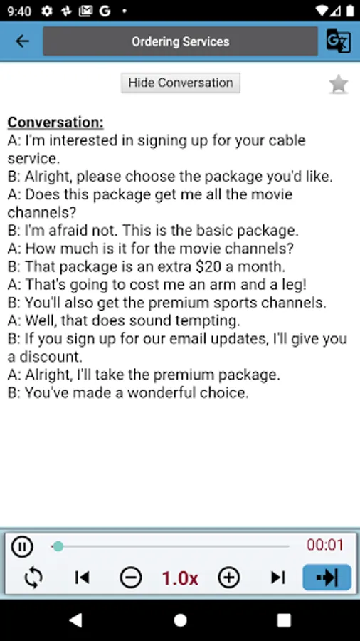 Listen to the audio tracks and practice along, and you'll see a rapid improvement in your listening and speaking abilities. The app also comes with a translation tool, making it easier for you to understand the conversations and learn advanced English phrases and words.