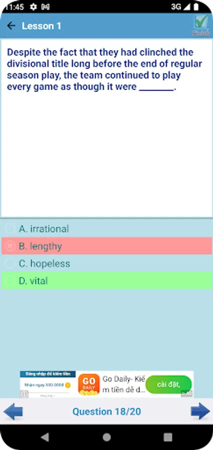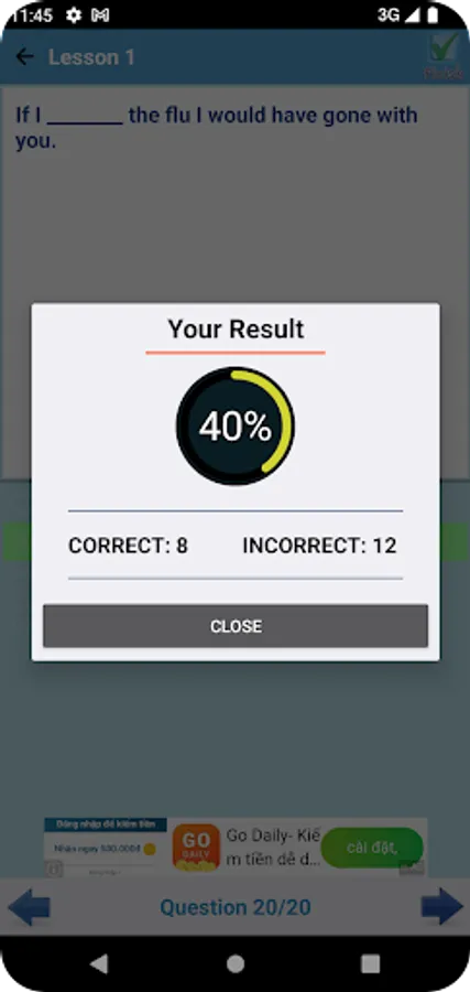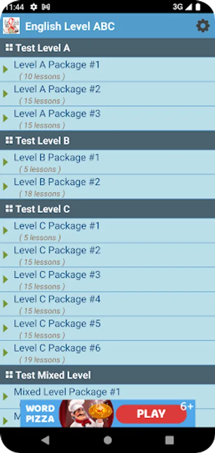 Test your English skills and receive a grade in level A, B, C, Mixed Levels, or Grammar levels, and track your progress with ease. This app allows you to test and improve your English knowledge anytime, anywhere.